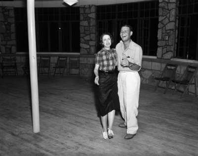 Annual Texas Cowboy Reunion at Stamford, Texas; Mr. and Mrs. Bud Wheeler of Seymour doing the "schottisch" at the bunkhouse, 07/06/1938