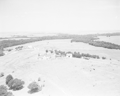 Aerial of Dutch Branch Ranch, home of Mr. and Mrs. Elliott Roosevelt, in southwestern Tarrant County, east of Benbrook Lake.