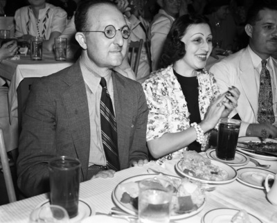 Casa Manana spectators at opening of third season; Senor Miguel Palacci of Mexico and Mrs. Leon Aaron of Dallas, 07/29/1938