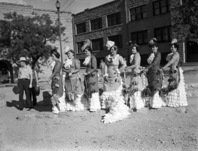 Fort Griffin Fandangle, a cavalcade of West Texas, Albany, Texas; chorus, from left, Mrs. J.H. Sedwick, Betty Burns, Mrs. Graham Webb Jr., Mrs. Swenson King, Mrs. Jim Nail, Mrs. Andrew Howsley, Mrs. D.C. McCombs, 07/31/1938