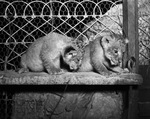 Two lion cubs, King and Queen, will wear crowns at Queen Tut's (elephant) coming-out party at Forest Park Zoo, Fort Worth, 08/10/1938