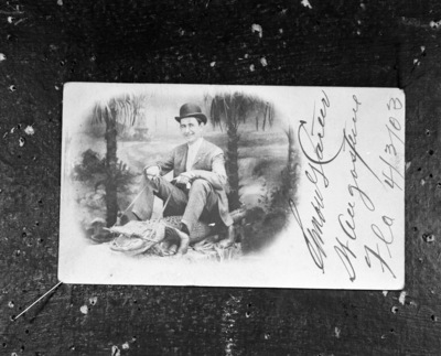 A copy of a photo-postcard featuring Amon Carter at Street Augustine, Florida. 04/03/1903