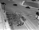 The first section of the old wood block pavement that had been laid in 1912 on lower Houston Street in Fort Worth being torn out at the start of the street repaving project, 09/01/1938