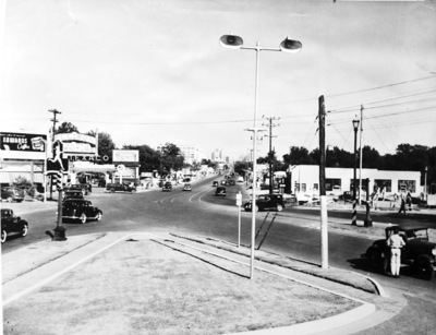 Intersection looking east toward downtown Fort Worth at Camp Bowie Boulevard, 7th Street and University Drive.
