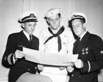 Local Sea Scouts, from left, O. L. Blanton, Louis Reid, and Lawrence Schenck, will give Beaumont's Sea Scouts a river reception when they arrive from trip up the Trinity River from Anahuac, 06/1938