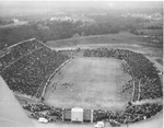 Texas Christian University (T. C. U.) stadium with crowds in stands and players on field [teams unknown], 01/04/1939.