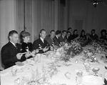 TCU football players and their guests treated to dinner and theater party by Amon Carter following their win at the 1939 Sugar Bowl in New Orleans [names provided on the envelope]. Clipping reads "Seniors of the Texas Christian University Horned Frogs, national football champions, and their dates were guests of Amon Carter at dinner at the Fort Worth Club Saturday night and were given a theater party at the Worth Theater afterward." Published in the Fort Worth Star-Telegram Sunday Home edition, January 8, 1939.