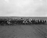 Matador Ranch scenes in Hutchinson County; close-up of a herd of whiteface cattle, cowboys in background.