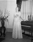 Mrs. W. Lee O'Daniel in the gown she will wear as "First Lady of Texas" to her husband's inauguration ball, 01/15/1939