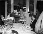 Pat and Molly O'Daniel reach for biscuits on a platter being held by their father, Governor Wilbert L. O'Daniel. This picture was taken at Governor O'Daniel's first luncheon in the Governor's Mansion.