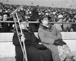 Mrs. W.R. Williams of Merkel with crutches and her companion, Mrs. C.C. Chance of Waco, watch inauguration of W. Lee O'Daniel in Austin, 01/17/1939