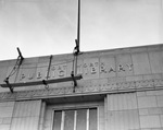 Workmen completed lettering over entrance to new Fort Worth Public Library, 9th and Throckmorton, 01/26/1939