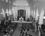 Requiem high mass for Pope Pius XI celebrated in Saint Patrick's Church by Reverand C.E. McTamney, assistant pastor, and assisted by Reverand Ernst Langenhorst; altar boys are Jack Bird and Bryan Moran, 02/15/1939