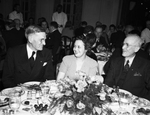 A woman sits between two men during the appreciation dinner for Amon Carter Senior at the Fort Worth Texas Club.