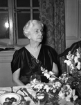 A photograph featuring a woman seated at a table during the appreciation dinner for Amon Carter Senior at the Fort Worth Texas Club.