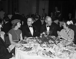 Two unidentified men and two unidentified women seated at a table during an appreciation dinner for Amon Carter Sr. at the Fort Worth Club.