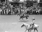 Parades; Crowds; Downtown; Horses; Parades & processions; Southwestern Exposition and Fat Stock Show; Spectators; Stores & shops
