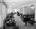 Working desks at the City Tax Offices which occupies half of the first floor of the new Fort Worth City Hall, 10th and Throckmorton, 03/24/1939. There are a couple of people seating at the desks.