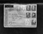 Photo of envelope containing letter carried on first airmail flight, Yankee Clipper from France to the United States this week; W.C. Bigby of Fort Worth received it from Holland, 05/30/1939