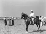C. T. McLaughlin's Diamond-M Ranch horse show, 17 miles southwest of Snyder; Texas. "London Melody," stake winner, owned by Rockwood Stables of Fort Worth, Spec Markham in the saddle.