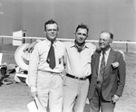 C. T. McLaughlin's Diamond-M Ranch horse show, 17 miles southwest of Snyder; Texas. (Left to right) ring master Travis Rumph of Fort Worth, Texas; Ranch owner C. T. McLaughlin and show judge Doctor George P. Grout of Panhandle, Texas.