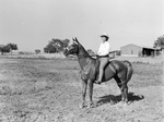 C. T. McLaughlin Diamond-M Ranch Horse Show near Snyder, Texas; Miss Anna Lee Spires of Roscoe on her mount, Run B. Glory.