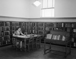 A researcher studies book in reading room of new Fort Worth Public Library, 9th and Throckmorton, 06/09/1939