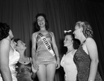 Margaret Lou Hopkins, age 15 and junior at Cleburne High School, crowned winner in Miss Cleburne beauty pagent, is surrounded by other contestants, 06/12/1939