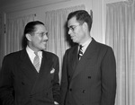 American Airlines sales meeting at Hotel Texas, Fort Worth; Charles E. Beard (left), vice president of traffic for Braniff Airways, and Charles A. Rheinstrom, vice president of sales for American Airlines, 06/26/1939