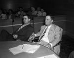 Fort Worth City Council; from left, Councilman Orville Tunstill, who cast the only vote to oppose dismissal of City Manager Dudley Lewis, and Councilman Woods, who made the motion for the dismissal, 06/28/1939