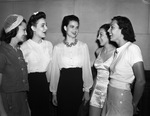 Talent at Casa Manana, veterans of Casa Manana, from left, Helen Whiting, Marguerite Joyce, and Beth Lea, get to know freshmen Valerie Belscamper (of Electra) and June Davis, 07/01/1939