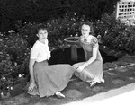 Pat McAfee (left) and her cousin Peggy Pool of Valley Mills enjoy cool shade at the fish pond at grandparents' (Mr. and Mrs. J.S. Pool) home in Mistletoe Heights of Fort Worth, 07/07/1939