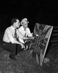 Methodist ministers and families in the Fort Worth district attended a picnic at Forest Park; inspecting scores in dart baseball are Reverand Edgar Neal (left) of Arlington Heights and Reverand Clyde Jones, Missouri Avenue Church.