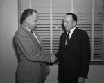 Fort Worth's Mayor Harrell (left) greets Sam H. Bothwell of Sweetwater who will become city manager of Fort Worth on August 1; Bothwell was recently appointed to the position by the Fort Worth City Council.