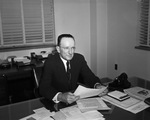 Newly appointed Fort Worth City Manager, Sam H. Bothwell, trying out his new desk at City Hall.