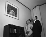 Newly appointed Fort Worth City Manager Sam H. Biothwell (right) with current acting City Manager George Kimbal looking at an artist rendering of the new City Hall, 07/12/1939