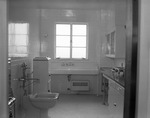 Interior room of new City-County Hospital, 1500 South Main Street, Fort Worth; name changed to John Peter Smith Hospital in 1954. The room appears to be a bathroom.