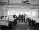 Spacious ward in new city-county hospital (later renamed John Peter Smith), 1500 South Main Street, Fort Worth; from left, chief of staff Doctor A.L. Roberts, board members Commissioner Thannisch, Doctor Webb Walker, Commissioner Scott, Councilman McCrary,