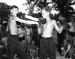 At the Panther Boys 10-acre camp at Lake Worth, from left, L. D. McCoy and Sam Fields enjoy a friendly boxing match, 07/14/1939