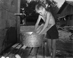 At the Panther Boys 10-acre camp at Lake Worth, Billy Defibaugh works with the laundry and earns candy wrappers for the day; candy wrappers are used as currency in the camp.
