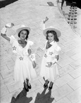 Casa Manana of 1939; Louise Shurig, Miss Gainesville, and Marzelle Van Hoosier of Weatherford, Texas model white lambskin and satin costumes for the Texas sweetheart roundup number, 07/15/1939