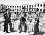 Fort Worth's Casa Manana of 1939; "Oomph" boys and cowgirl dancers; from left, Douglas Martin, Ann Wiggins, Charles Jennings, Louise Mariquine (Miss Galveston), and Frank Payne, 07/15/1939