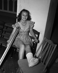 Pioneer Palace dancer Mary Lee Jennings nurses broken foot while watching Casa Manana rehearsals, 07/18/1939