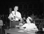 Fort Worth Frontier Fiesta, Casa Manana; Carlton Winckler, co-producer, at the mike, and Miss Marjorie Robison, taking notes, 07/19/1939