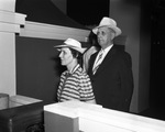 Preview Night at Casa Manana; R. K. Phillips, publisher of the Weatherford Democrat newspaper, and Mrs. Phillips enter through turnstiles, 07/20/1939