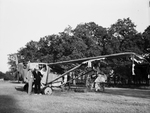 Clinton M. Hester (right), of Washington, D. C. and the Civil Aeronautics Authority, and Amon G. Carter Sr. inspecting the pioneer National Air Transport plane, which since 1931 has rested on Shady Oak Farm in Texas.