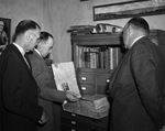 Appreciation luncheon for City Manager Sam H. Bothwell who will become City Manager in Fort Worth; Bothwell shows his scrapbook to Sweetwater's former Mayor C.W. Bryant (left) and current Mayor C.C. Johnston.