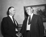Appreciation luncheon for Sweetwater's City Manager Sam H. Bothwell who will become City Manager in Fort Worth; in the picture from left, C.W. Bryant, former Mayor, and current Sweetwater Mayor C.C. Johnston. Both men can be shaking hands and wearing suits and eyeglasses.