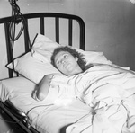 Mrs. Myrtle Stanley, waitress at tavern owned by Isaiah Creel, in hospital bed; under murder charge of Sheriff Bill Brunt of Cherokee County, 08/03/1938