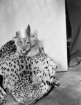 At Fort Worth's Forest Park Zoo, Pedro Junior, one of the lion cub quintuplets, was made crown prince of the zoo during Queen Tut's birthday celebration, 08/12/1939